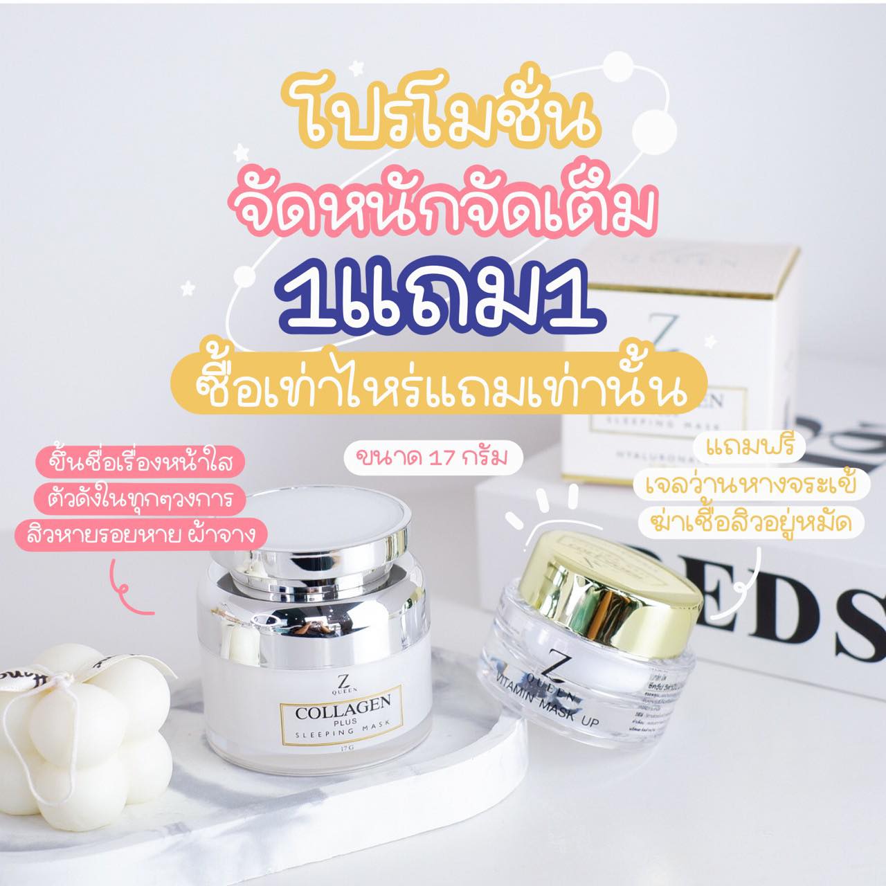 มาส์กคอลลาเจนพลัส สูตรใหม่ แถมฟรีเจลว่านหางจระเข้าฆ่าเชื้อสิว (แถมฟรีเฉพาะลูกค้าที่สั่งซื้อขนาด17กรัม)